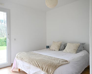 chauffage au sol, grand garage, TV, internet, cuisine entièrement équipée, 2 chambres, 1 dressing et 1 salle d'eau, lave-linge