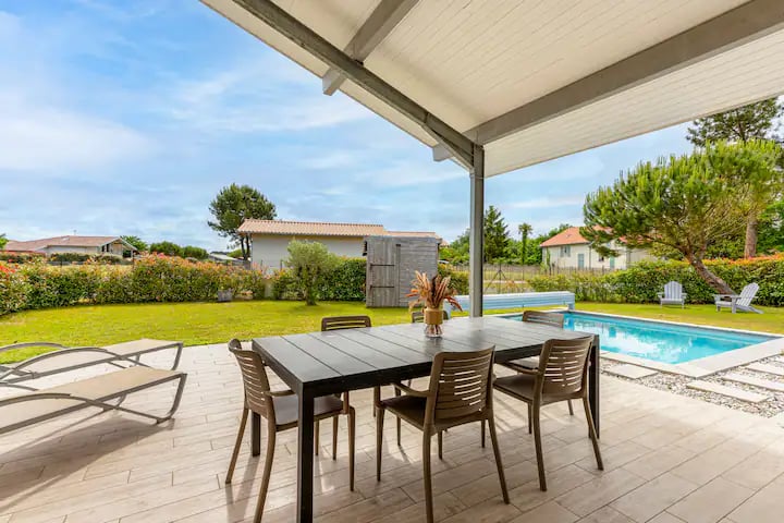 Villa de 90m2 pouvant accueillir jusqu'à 4 personnes, avec piscine et terrasse abritée